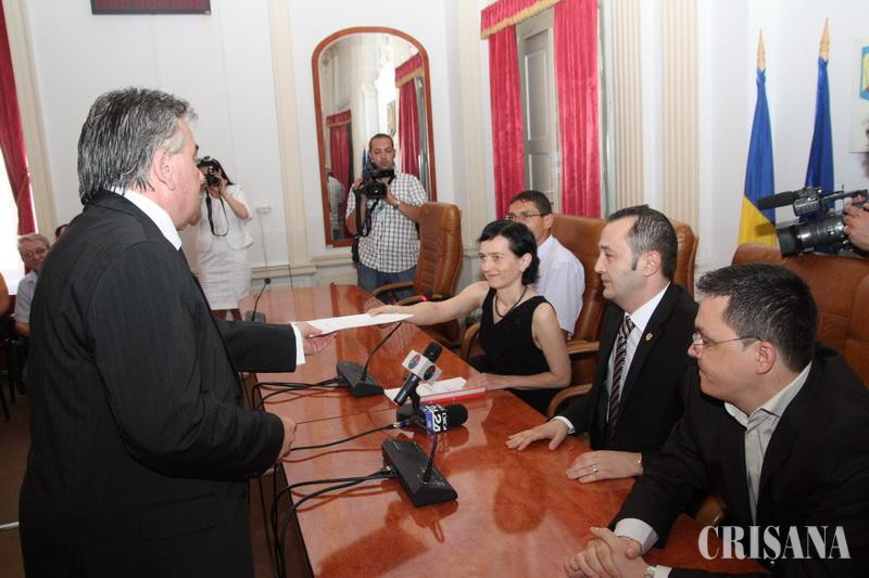 Preşedintele Biroului Electoral Judeţean, judecătoarea Florina Crişan, a înmânat ieri certificatele doveditoare ale câştigării alegerilor din 10 iunie celor 34 de consilieri judeţeni şi preşedintelui CJ Bihor, Cornel Popa. Evenimentul s-a desfăşurat în sala de şedinţe a Consiliului Judeţean, în prezenţa prefectului Claudiu Pop şi a subprefectului Cristian Bitea. Judecătoarea Florina Crişan a atras atenţia că certificatele nu le conferă calitatea de consilieri judeţeni, ei trebuind să fie validaţi de Tribunalul Bihor şi în şedinţa Consiliului Judeţean. Ea a mai amintit că în cursa pentru cele 34 de mandate al CJ au intrat peste 300 de candidaţi, în timp ce pentru şefia administraţiei judeţene au candidat 10 persoane. "Sper ca în continuare să vă exercitaţi mandatele cu bună-credinţă şi cu respectarea legii", a mai menţionat preşedintele BEJ Bihor. Primul care a intrat în posesia certificatului care îi atestă victoria la alegeri a fost Cornel Popa, noul preşedinte al CJ Bihor. Pentru a putea să preia fotoliul de şef al administraţiei judeţene, Popa va trebui să renunţe la mandatul de senator în Colegiul 2 (zona Beiuş-Ştei-Aleşd). A urmat înmânarea certificatelor pentru consilierii judeţeni, care au fost chemaţi în ordine alfabetică: Ionel Avrigeanu (PDL), Florin Birta (PNL), Florin Bogdan (PSD), Traian Bogdan (PC), Traian Bulzan (PNL), Valentina Butişcă (PSD), Ovidiu Copil (PSD), Dan Derşidan (PSD), Dorel Dume (PDL), Dacian Foncea (PNL), Foro Laszlo (UDMR), Nicolae Gherdan (PNL), Ioan Hule (PPDD), Alexandru Kiss (UDMR), Kiss Sandor Elek (UDMR), Ioan Lascău (PPDD), Liviu Laza Matiuţă (PDL), Călin Maghiar (PSD), Ioan Mang (PSD), Călin Mocan (PDL), Florin Oros (PDL), Emilian Pavel (PSD), Viorel Pop (PNL), Cornel Popa (PNL), Marius Rotar (PSD), Ioan Sala (PNL), Sarkozi Alexandru (UDMR), Smaranda Scridon (PNL), Mircea Straniş (PDL), Szabo Odon (UDMR), Szabo Ştefan (UDMR), Turucz Maria (UDMR), Radu Ţîrle (PDL) şi Dumitru Voloşeniuc (PNL). Nu au fost de faţă să-şi ridice mandatele liderul interimar al PDL Bihor, Ionel Avrigeanu, fostul preşedinte al CJ Bihor, Radu Ţîrle, respectiv social-democraţii Florin Bogdan şi Valentina Butişcă. Până la constituirea viitorului Consiliu Judeţean, cei cărora le-au fost înmânate ieri certificatele vor trebui să decidă dacă vor accepta mandatul de consilier judeţean sau vor lăsa locul pentru următorii de pe listă. Tot ieri, în sala mare a Primăriei Oradea, preşedintele Biroului Electoral Municipal, judecătorul Ovidiu Galea, a înmânat primarului Ilie Bolojan şi noilor consilieri locali, certificatele doveditoare ale câştigării alegerilor pentru mandatul 2012 - 2016. Festivitatea, de la care au lipsit primarul Ilie Bolojan şi consilierii locali Huszar Istvan, Szabo Joszef, Mihai Groza şi Cristian Ile, a fost deschisă de secretarul Primăriei Oradea, Ionel Vila, care a precizat că certificatele pe care le vor primi fac dovada rezultatelor obţinute la alegerile electorale desfăşurate duminică, 10 iunie. Viitorul Consiliu Local Oradea va fi compus din 18 reprezentanţi ai USL, 6 consilieri UDMR şi 3 consilieri PDL. Cei 18 membri USL care au primit certificatele sunt: Florica Cherecheş, Lucian Uniţa, Mircea Mălan, Claudia Timofte, Ioan Cupşa, Daniel Negrean, Ioan Bonchiş, Daniel Vulcu, Octavian Dan, Aurel Mohan, Ioan Câmpan, Sebastian Lascu, Debelka Boglarka, Camelia Dulcă, Lucian Popa, Ovidiu Mureşan, Laviniu Filimon şi Mihai Manea. Din partea UDMR, mandatele au fost obţinute de Rozalia Biro, Pasztor Sandor, Huszar Istvan, Iulius Delorean, Szabo Jozsef şi Sarkozi Zoltan, în timp ce din partea PDL mandatele au ajuns la Mihai Groza, Cristian Ile şi Dorin Corcheş. Cel mai probabil, componenţa viitorului Consiliu Local Oradea nu va rămâne aceasta, unii dintre cei care au primit certificatele preferând să renunţe la calitatea de ales local.