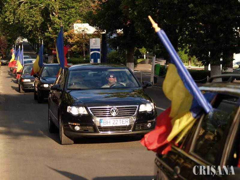 O acţiune inedită venită în sprijinul campaniei pentru suspendarea lui Traian Băsescu a fost organizată vineri, când peste 20 de autoturisme, flancate de steaguri, au pornit în marş prin Oradea.