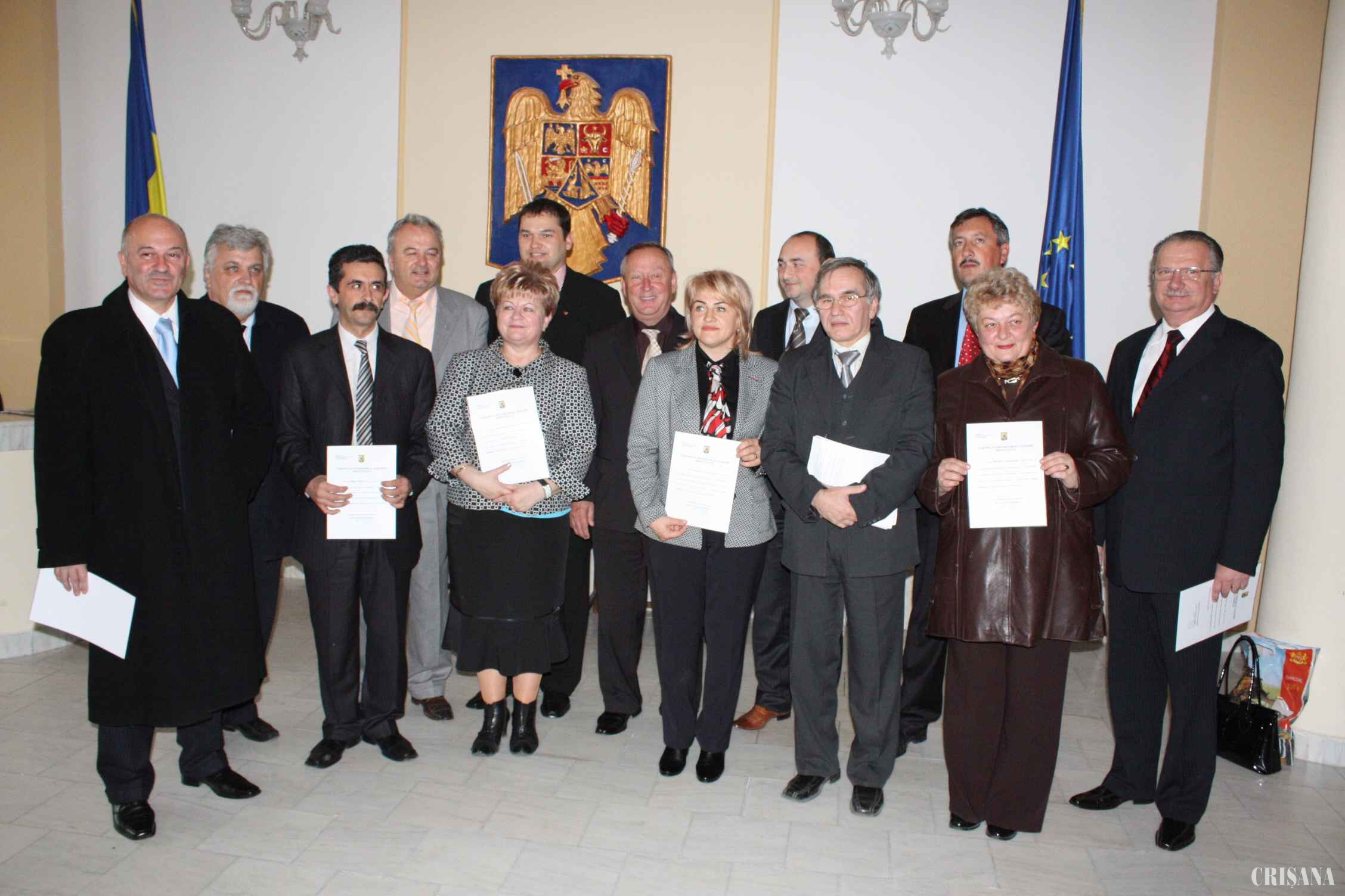 Senatorii şi deputaţii bihoreni aleşi în urma scrutinului din 30 noiembrie au primit, ieri, din partea preşedintelui Biroului Electoral Judeţean, certificatele care le atestă calitatea de parlamentar. Astfel, pentru următorii patru ani, în componenţa Parlamentului României se vor afla: senatorii Cseke Attila (UDMR - Colegiul 1), Cornel Popa (PNL - Colegiul 2), Petru Filip (PD-L - Colegiul 3) şi Ioan Mang (PSD - Colegiul 4), respectiv deputaţii Derzsi Akos (UDMR - Colegiul 1), Lakatos Petru (UDMR - Colegiul 2), Lucia Varga (PNL - Colegiul 3), Nicolae Jolţa (PNL - Colegiul 4), Ştefan Seremi (PD-L - Colegiul 5), Ioan Roman (PSD - Colegiul 6), Sonia Drăghici (PSD - Colegiul 7), Peto Csilla (UDMR - Colegiul 8) şi Octavian Bot (PD-L - Colegiul 9). La eveniment au fost prezenţi 12 din cei 13 parlamentari de Bihor, care au făcut o poză de grup, împreună cu preşedintele BEJ Ovidiu Bojan.