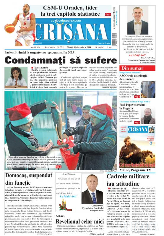 Fondat la Oradea, în anul 1945, cotidianul Crişana este una dintre cele mai longevive publicaţii locale, cu o apariţie neîntreruptă de 81 de ani.