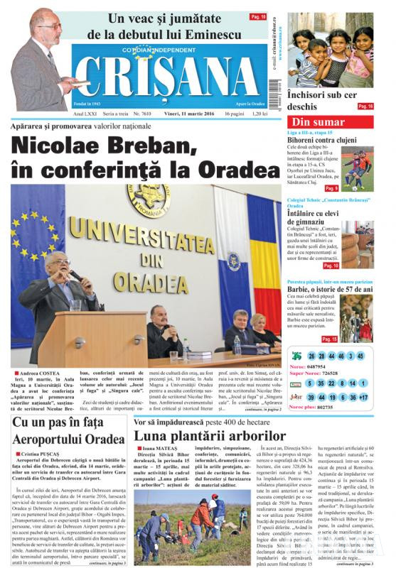 Fondat la Oradea, în anul 1945, cotidianul Crişana este una dintre cele mai longevive publicaţii locale, cu o apariţie neîntreruptă de 81 de ani.
