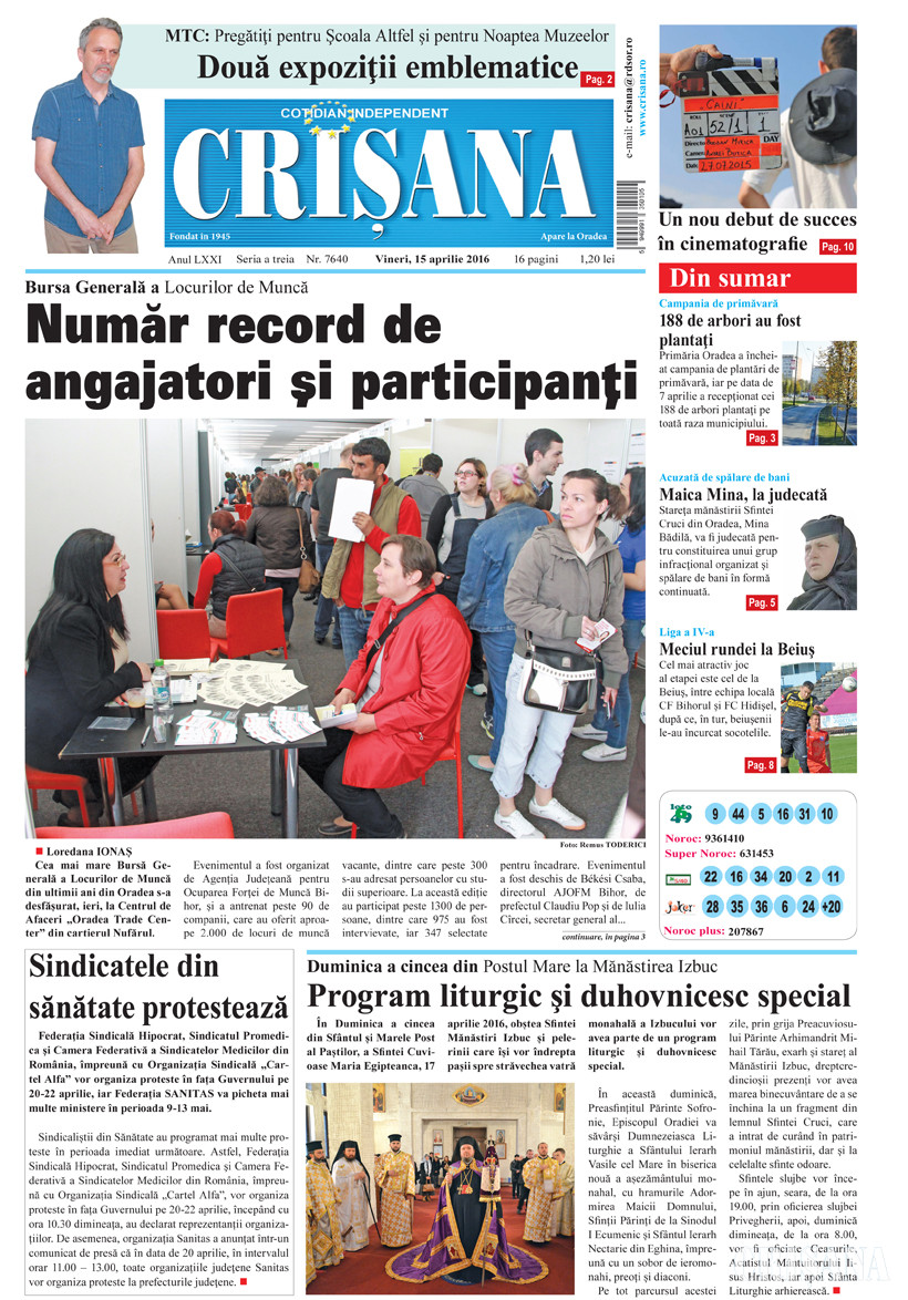 Fondat la Oradea, în anul 1945, cotidianul Crişana este una dintre cele mai longevive publicaţii locale, cu o apariţie neîntreruptă de 81 de ani.