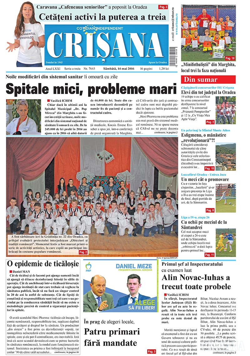Fondat la Oradea, în anul 1945, cotidianul Crişana este una dintre cele mai longevive publicaţii locale, cu o apariţie neîntreruptă de 80 de ani.