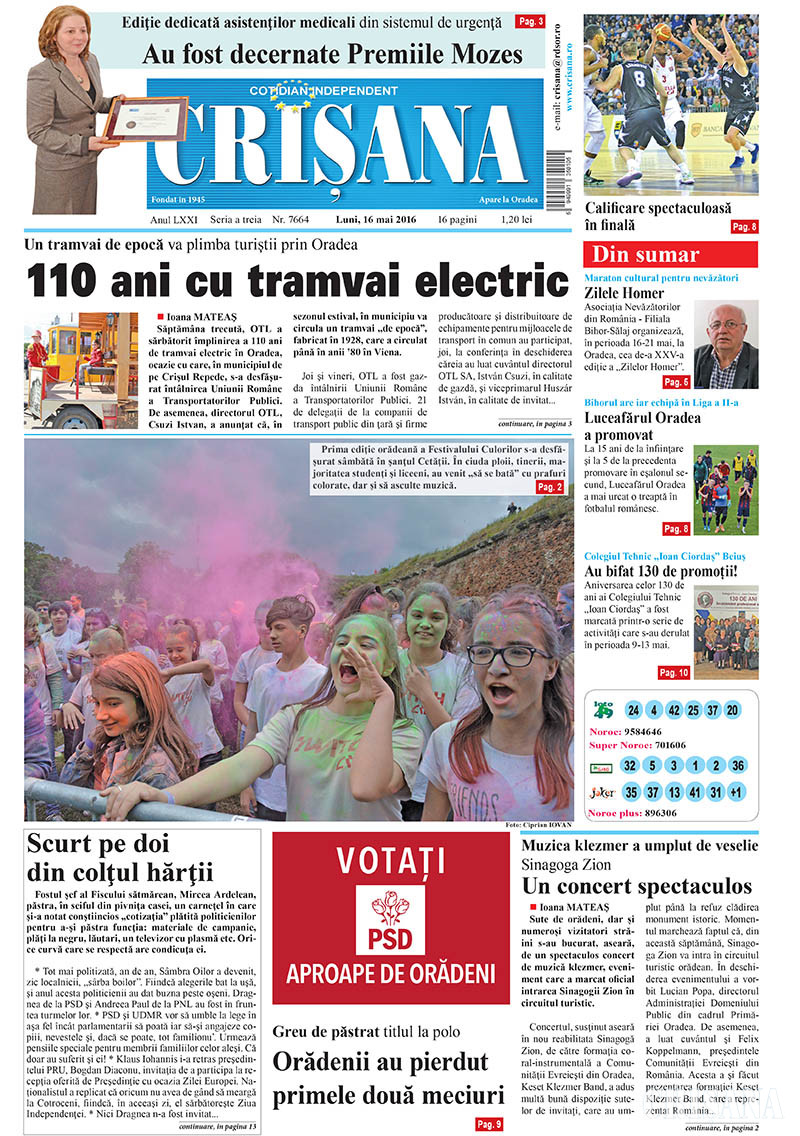 Fondat la Oradea, în anul 1945, cotidianul Crişana este una dintre cele mai longevive publicaţii locale, cu o apariţie neîntreruptă de 81 de ani.