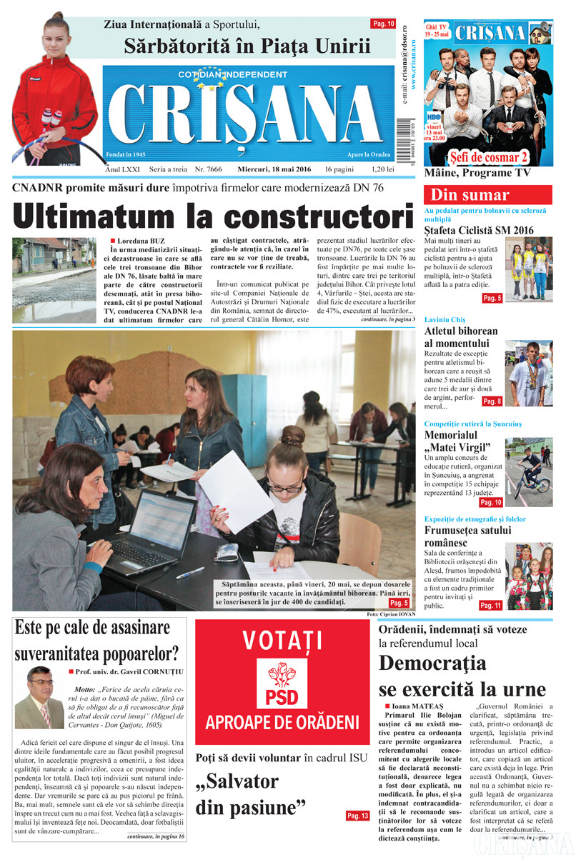 Fondat la Oradea, în anul 1945, cotidianul Crişana este una dintre cele mai longevive publicaţii locale, cu o apariţie neîntreruptă de 80 de ani.