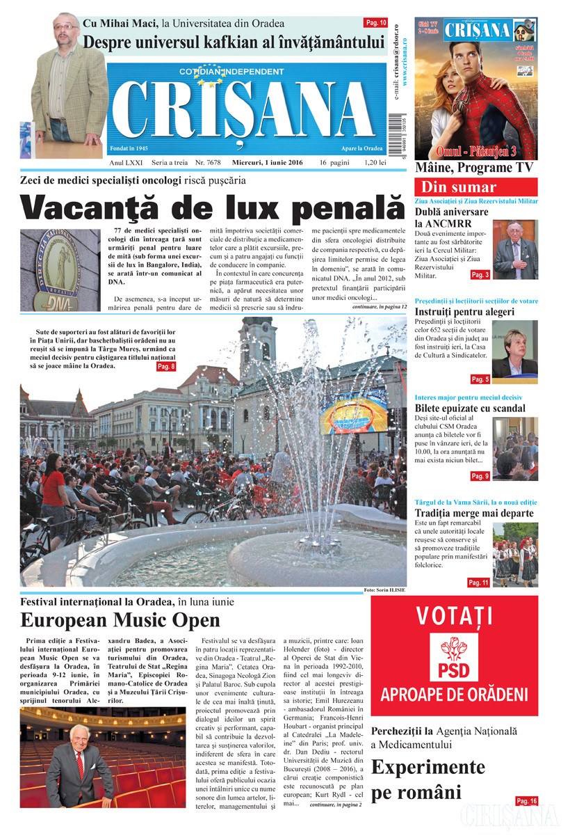 Fondat la Oradea, în anul 1945, cotidianul Crişana este una dintre cele mai longevive publicaţii locale, cu o apariţie neîntreruptă de 80 de ani.