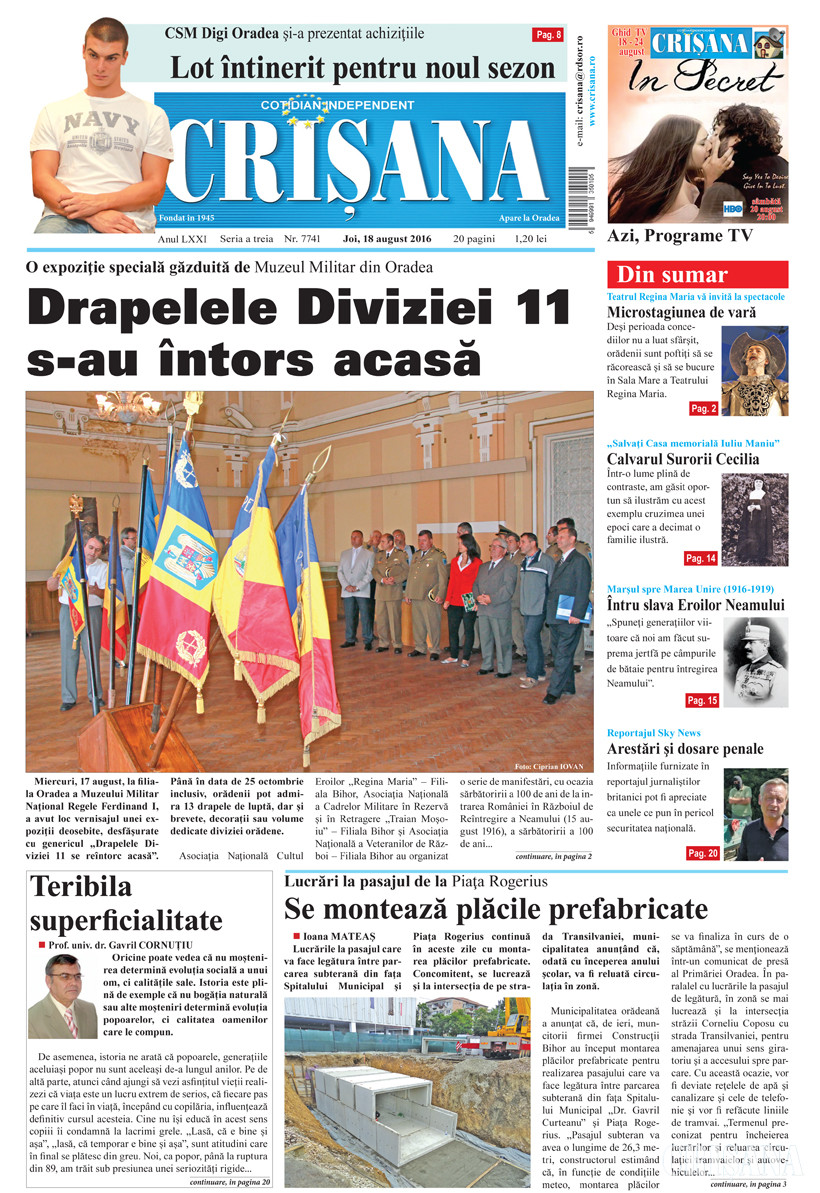Fondat la Oradea, în anul 1945, cotidianul Crişana este una dintre cele mai longevive publicaţii locale, cu o apariţie neîntreruptă de 81 de ani.