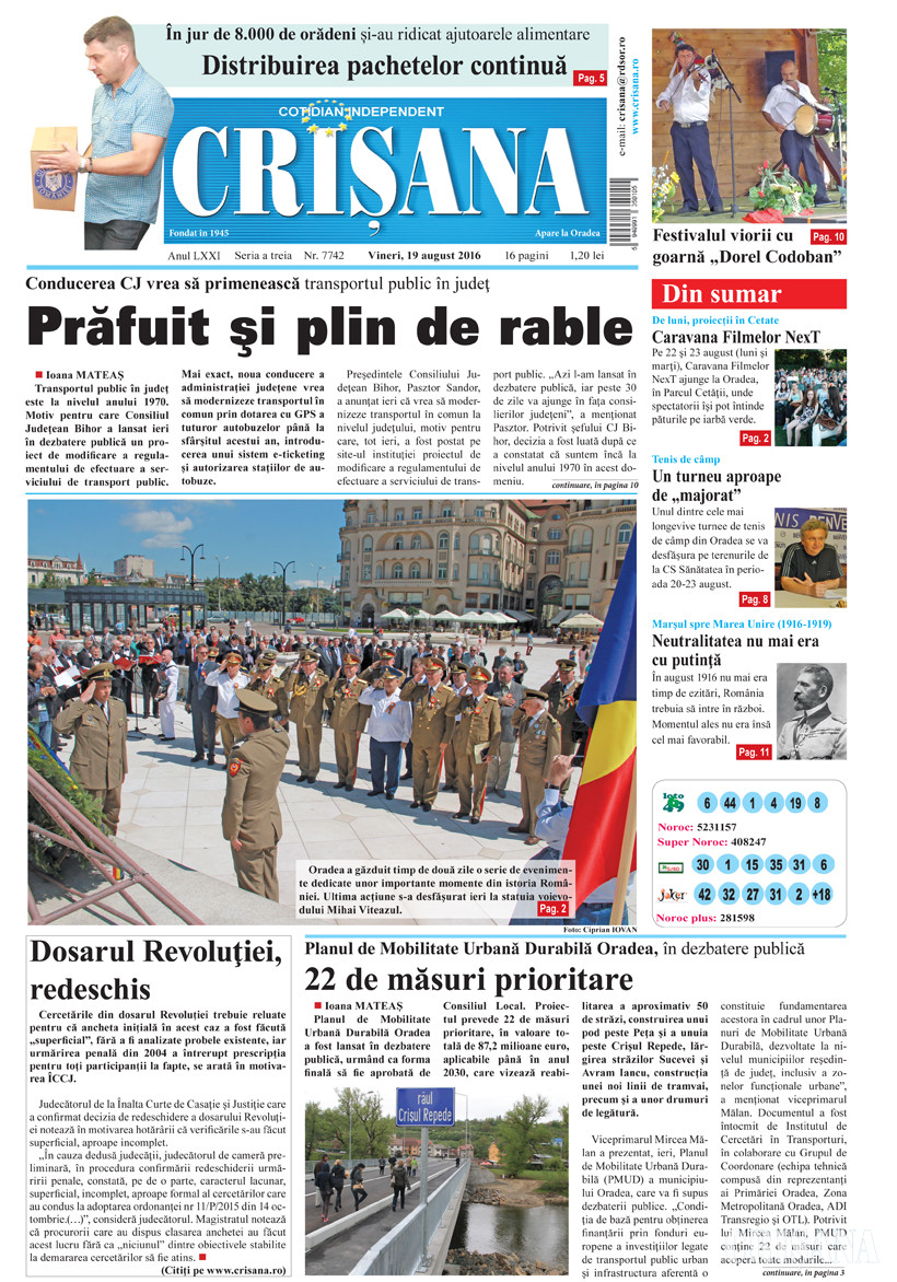 Fondat la Oradea, în anul 1945, cotidianul Crişana este una dintre cele mai longevive publicaţii locale, cu o apariţie neîntreruptă de 81 de ani.