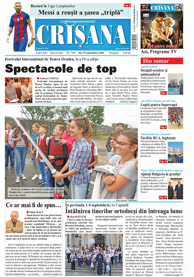 Fondat la Oradea, în anul 1945, cotidianul Crişana este una dintre cele mai longevive publicaţii locale, cu o apariţie neîntreruptă de 81 de ani.