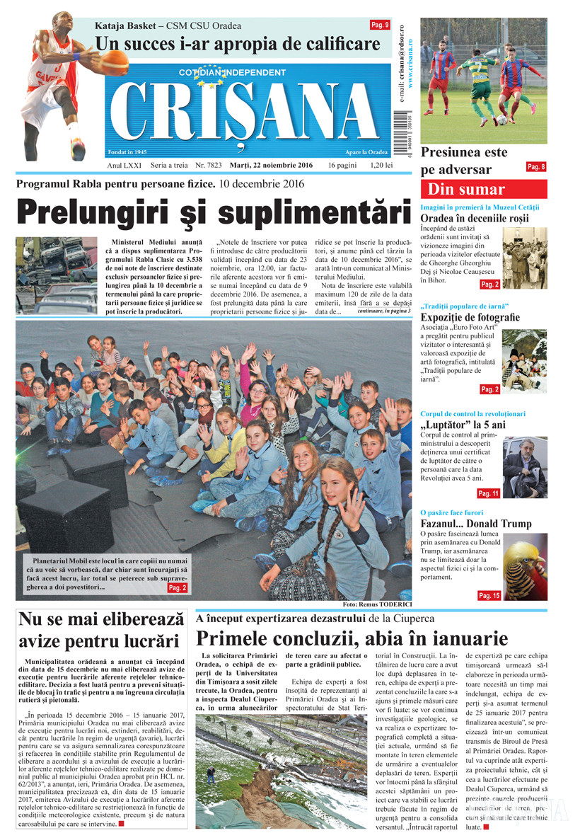 Fondat la Oradea, în anul 1945, cotidianul Crişana este una dintre cele mai longevive publicaţii locale, cu o apariţie neîntreruptă de 80 de ani.