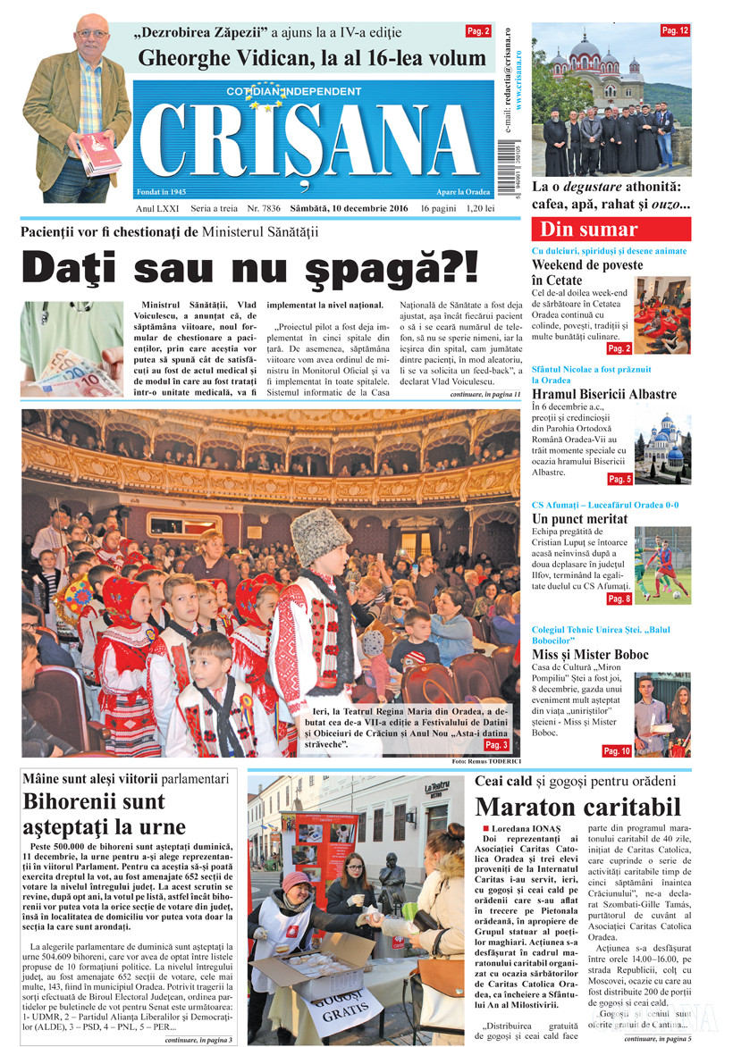 Fondat la Oradea, în anul 1945, cotidianul Crişana este una dintre cele mai longevive publicaţii locale, cu o apariţie neîntreruptă de 81 de ani.