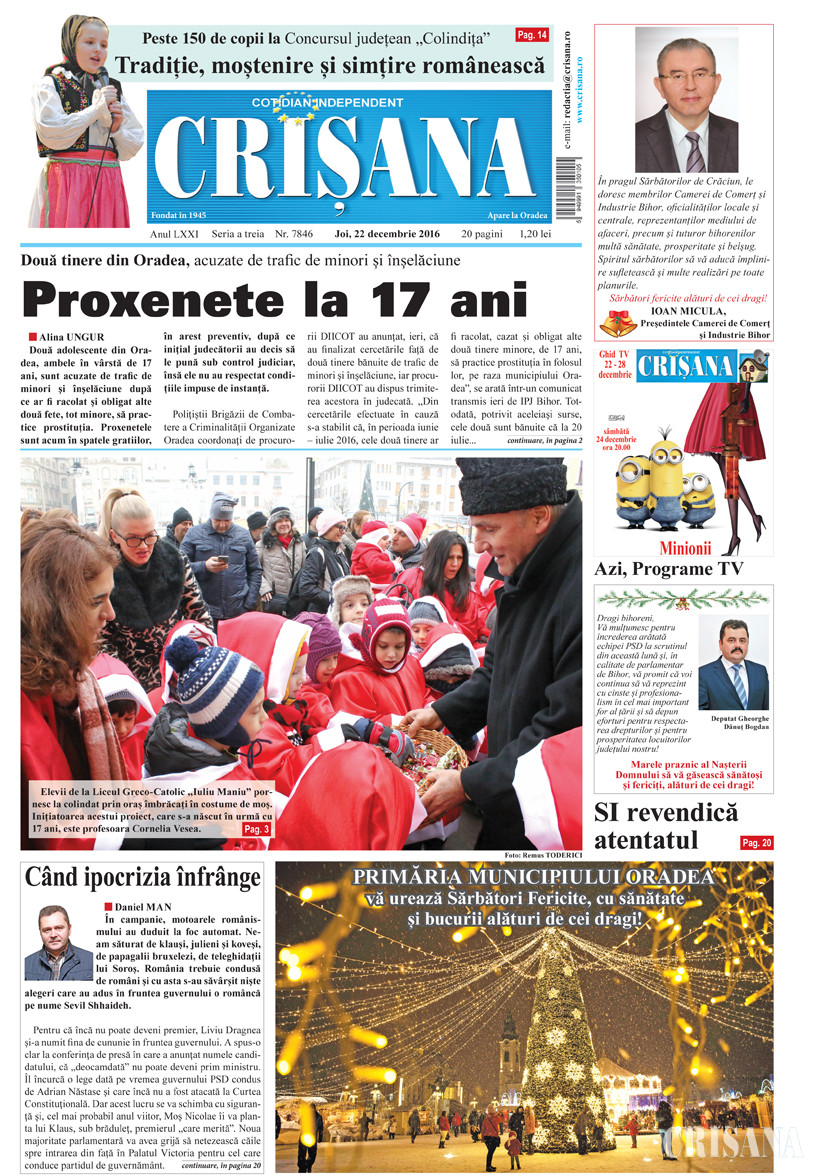 Fondat la Oradea, în anul 1945, cotidianul Crişana este una dintre cele mai longevive publicaţii locale, cu o apariţie neîntreruptă de 81 de ani.
