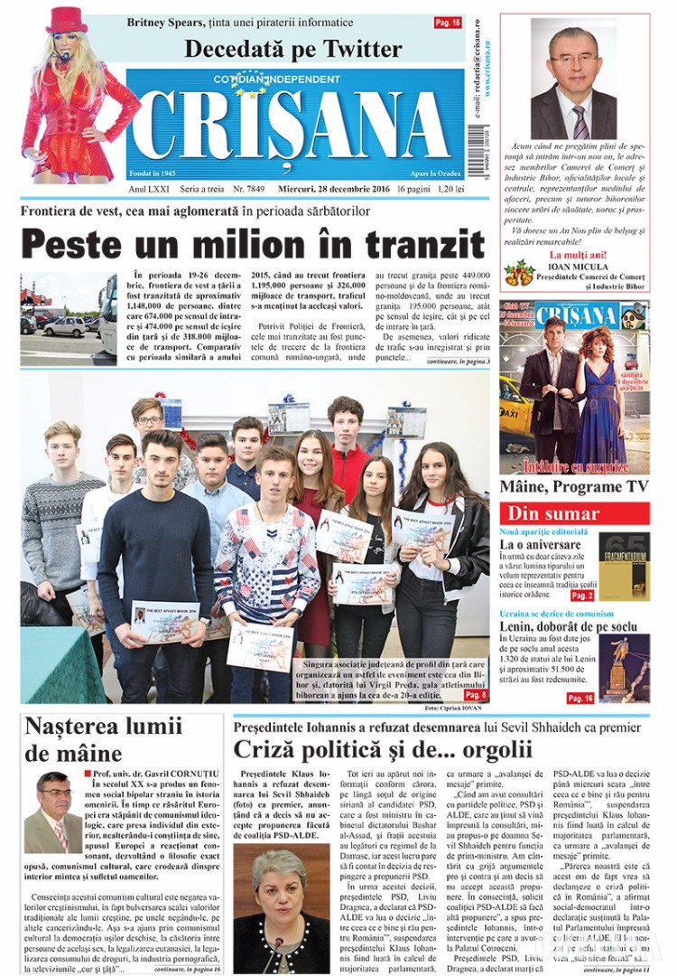 Fondat la Oradea, în anul 1945, cotidianul Crişana este una dintre cele mai longevive publicaţii locale, cu o apariţie neîntreruptă de 81 de ani.