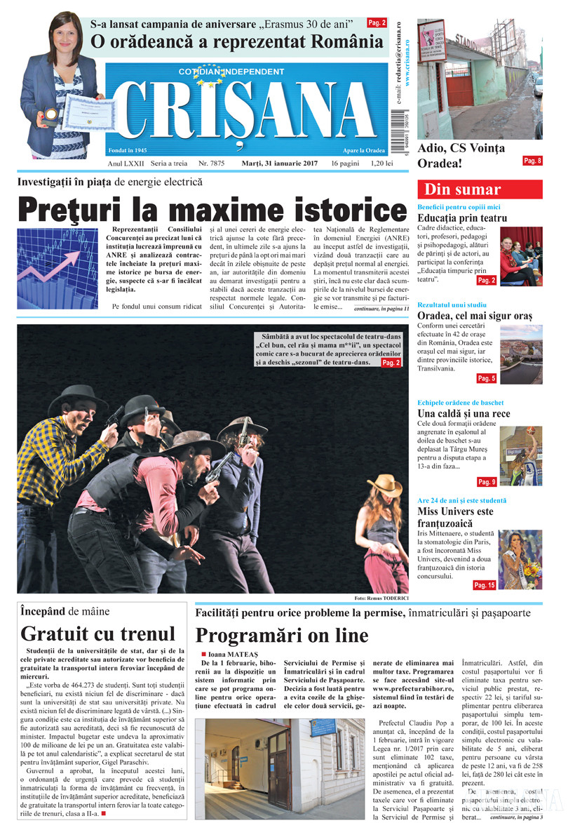Fondat la Oradea, în anul 1945, cotidianul Crişana este una dintre cele mai longevive publicaţii locale, cu o apariţie neîntreruptă de 80 de ani.