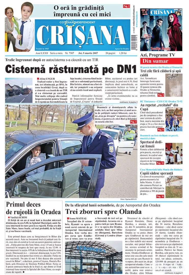 Fondat la Oradea, în anul 1945, cotidianul Crişana este una dintre cele mai longevive publicaţii locale, cu o apariţie neîntreruptă de 81 de ani.