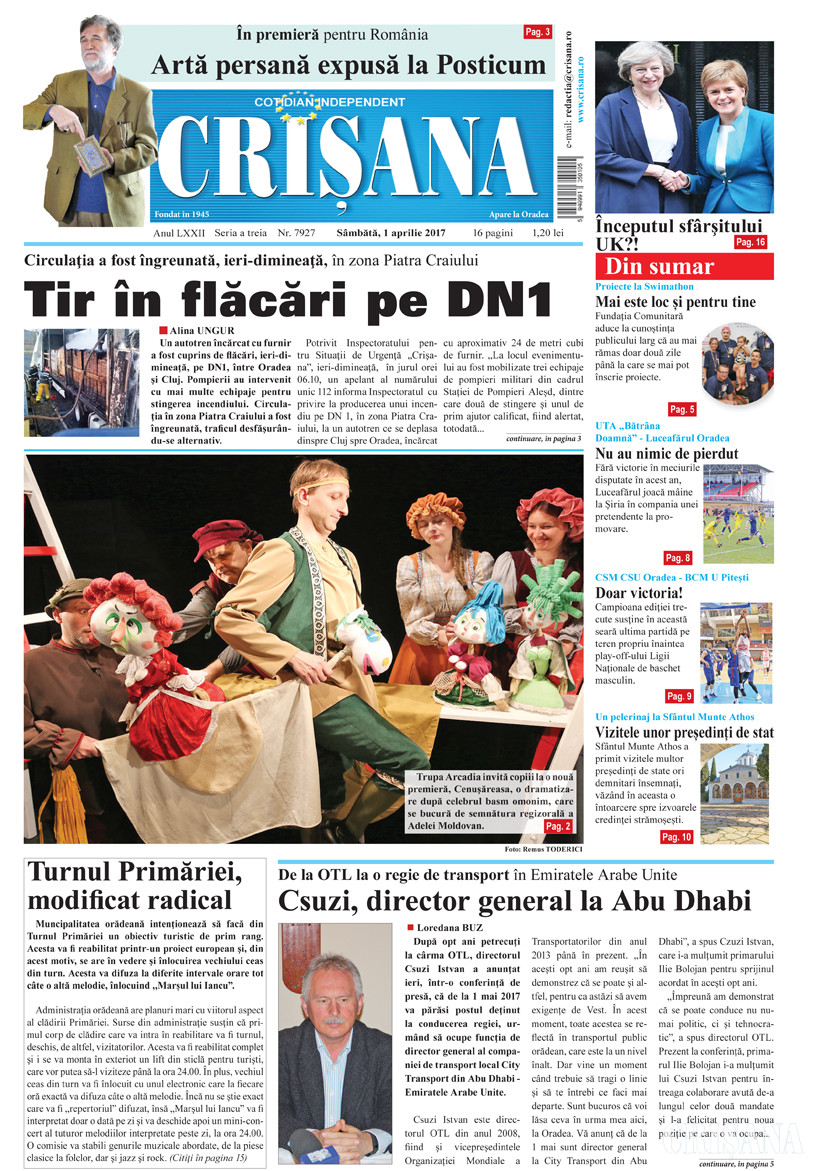 Fondat la Oradea, în anul 1945, cotidianul Crişana este una dintre cele mai longevive publicaţii locale, cu o apariţie neîntreruptă de 80 de ani.