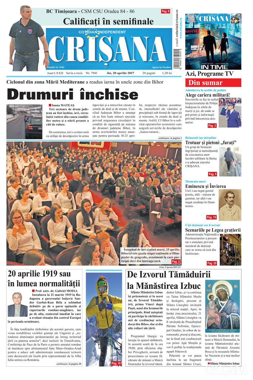 Fondat la Oradea, în anul 1945, cotidianul Crişana este una dintre cele mai longevive publicaţii locale, cu o apariţie neîntreruptă de 81 de ani.