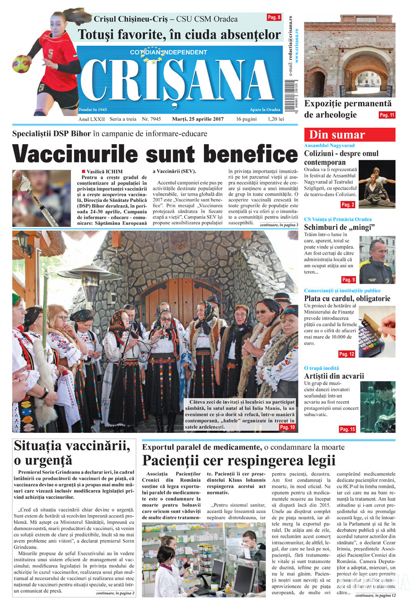 Fondat la Oradea, în anul 1945, cotidianul Crişana este una dintre cele mai longevive publicaţii locale, cu o apariţie neîntreruptă de 81 de ani.