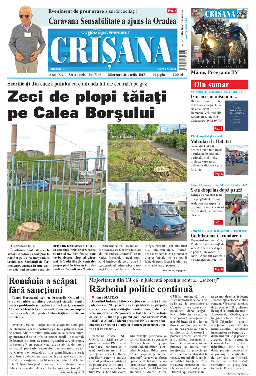 Fondat la Oradea, în anul 1945, cotidianul Crişana este una dintre cele mai longevive publicaţii locale, cu o apariţie neîntreruptă de 80 de ani.
