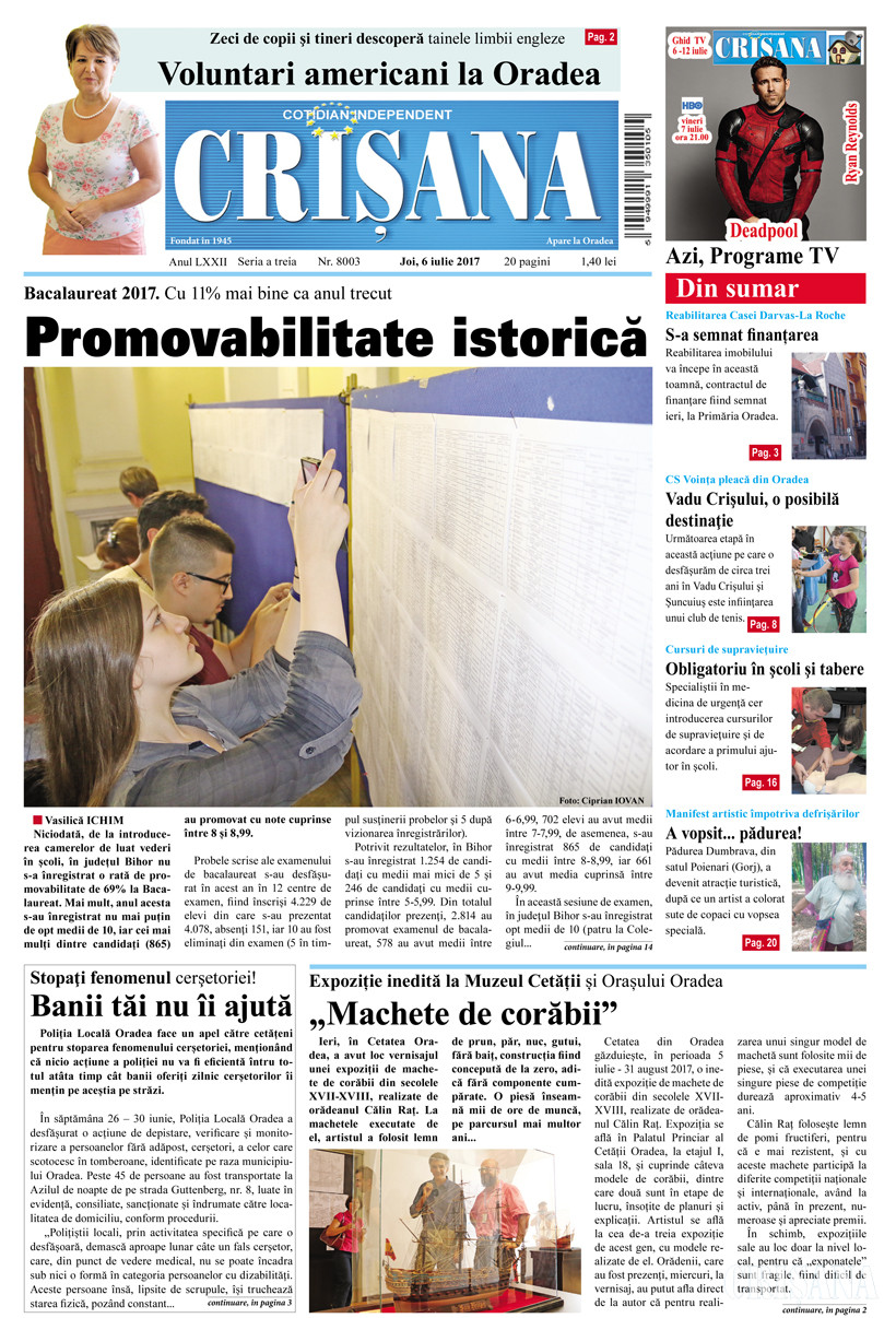 Fondat la Oradea, în anul 1945, cotidianul Crişana este una dintre cele mai longevive publicaţii locale, cu o apariţie neîntreruptă de 81 de ani.