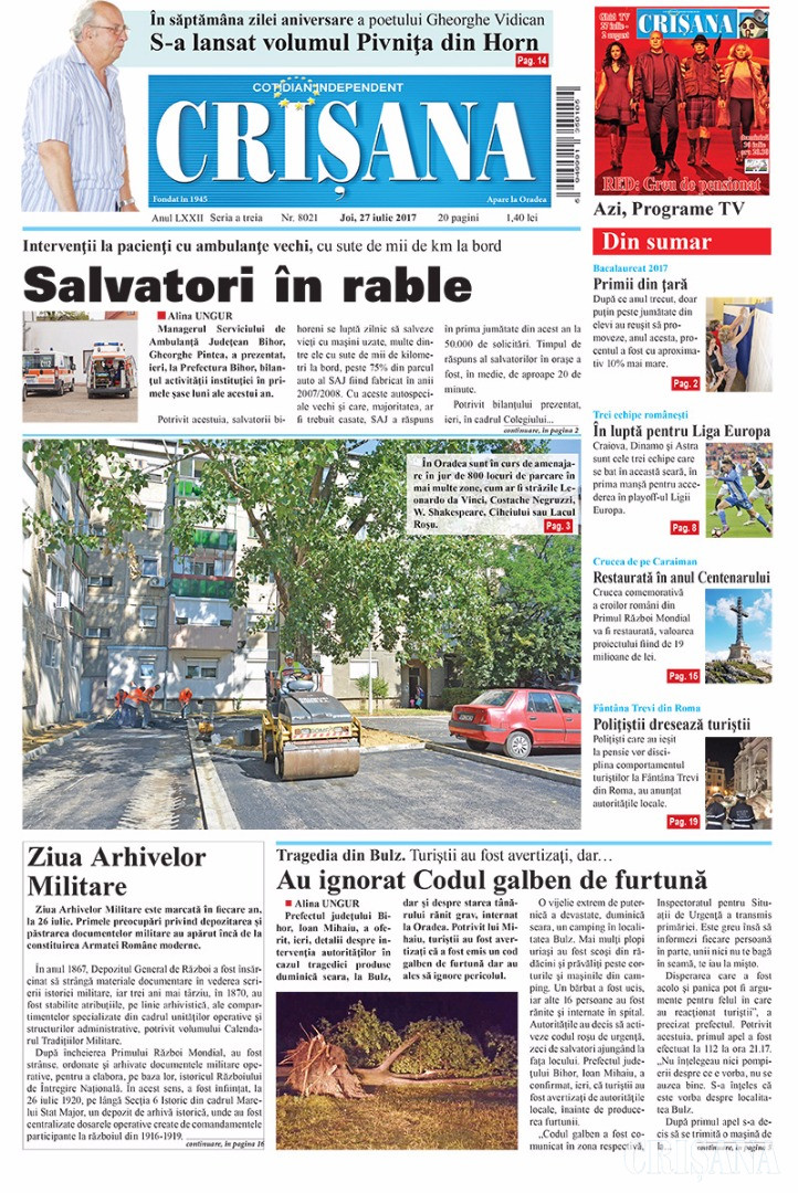 Fondat la Oradea, în anul 1945, cotidianul Crişana este una dintre cele mai longevive publicaţii locale, cu o apariţie neîntreruptă de 81 de ani.