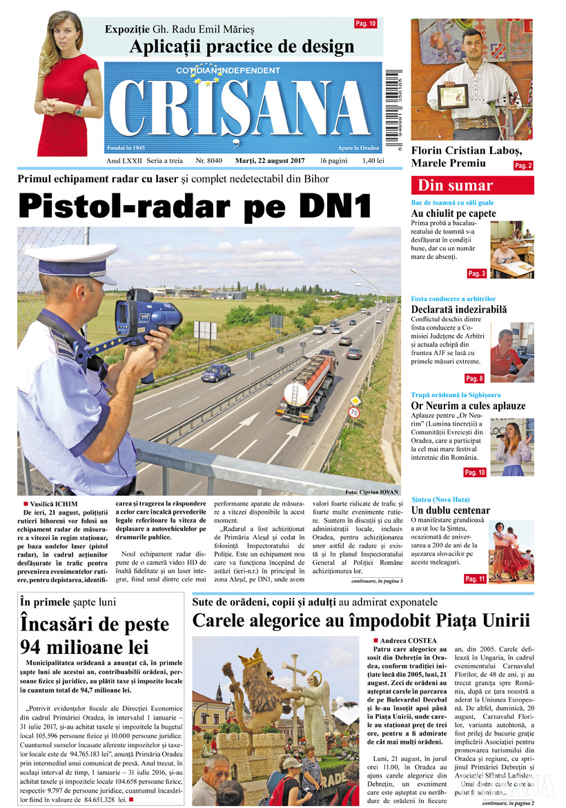 Fondat la Oradea, în anul 1945, cotidianul Crişana este una dintre cele mai longevive publicaţii locale, cu o apariţie neîntreruptă de 81 de ani.