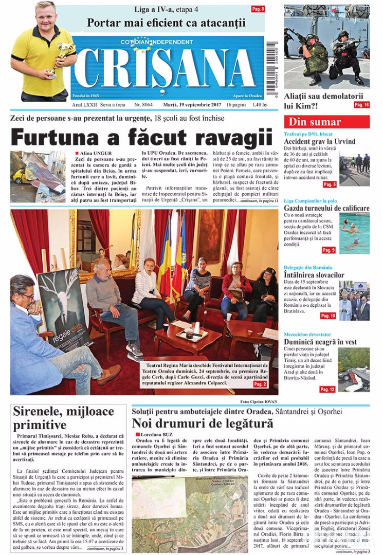 Fondat la Oradea, în anul 1945, cotidianul Crişana este una dintre cele mai longevive publicaţii locale, cu o apariţie neîntreruptă de 81 de ani.