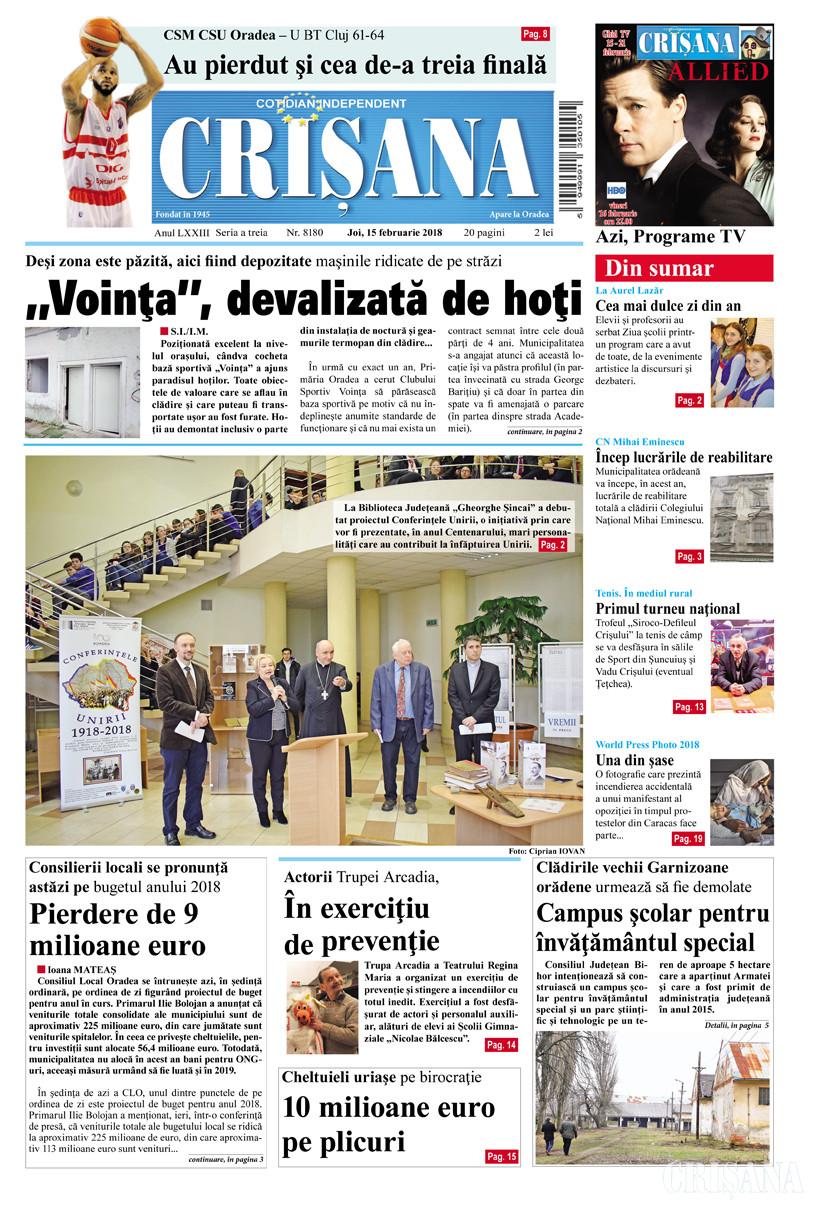 Fondat la Oradea, în anul 1945, cotidianul Crişana este una dintre cele mai longevive publicaţii locale, cu o apariţie neîntreruptă de 81 de ani.