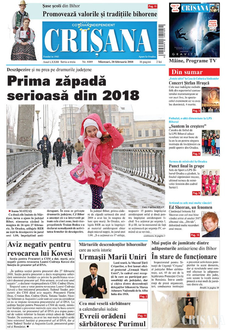 Fondat la Oradea, în anul 1945, cotidianul Crişana este una dintre cele mai longevive publicaţii locale, cu o apariţie neîntreruptă de 80 de ani.