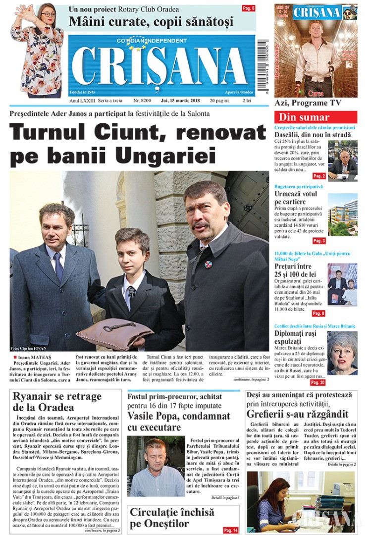 Fondat la Oradea, în anul 1945, cotidianul Crişana este una dintre cele mai longevive publicaţii locale, cu o apariţie neîntreruptă de 81 de ani.