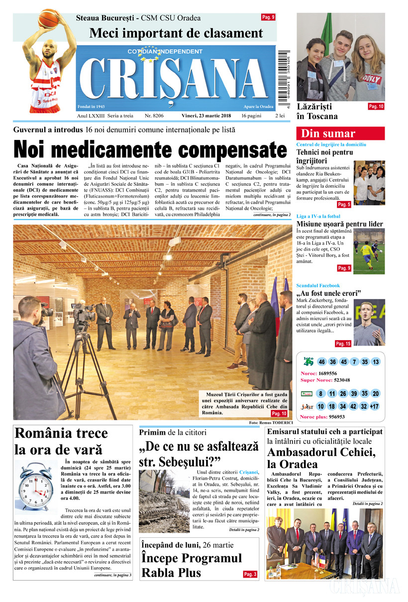 Fondat la Oradea, în anul 1945, cotidianul Crişana este una dintre cele mai longevive publicaţii locale, cu o apariţie neîntreruptă de 81 de ani.