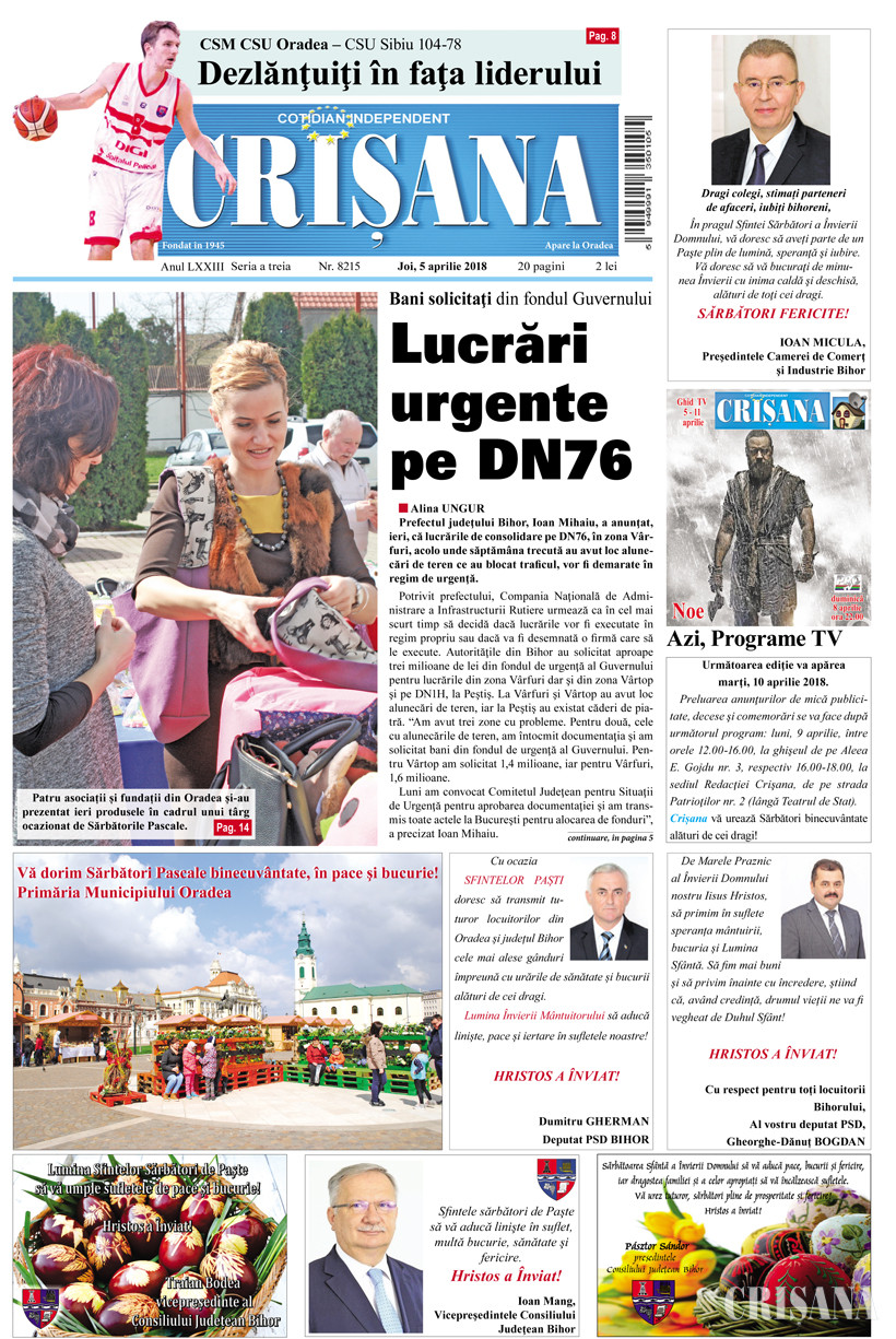 Fondat la Oradea, în anul 1945, cotidianul Crişana este una dintre cele mai longevive publicaţii locale, cu o apariţie neîntreruptă de 81 de ani.