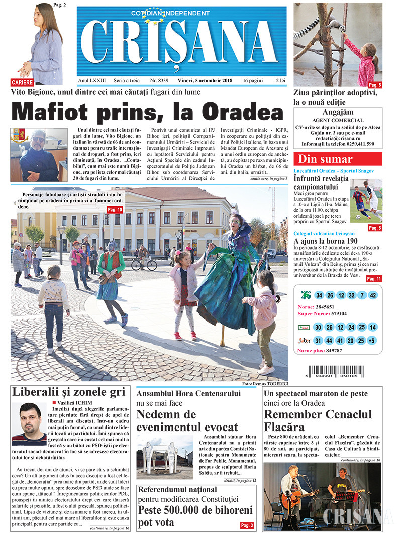Fondat la Oradea, în anul 1945, cotidianul Crişana este una dintre cele mai longevive publicaţii locale, cu o apariţie neîntreruptă de 81 de ani.