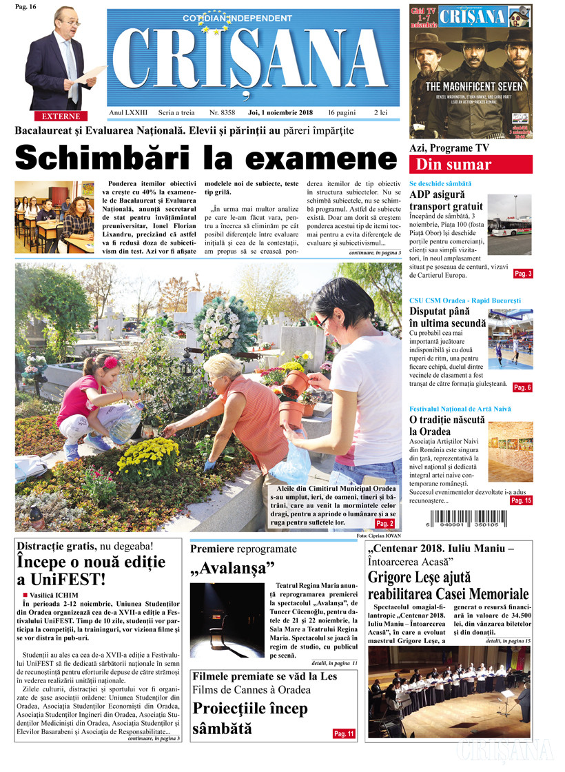 Fondat la Oradea, în anul 1945, cotidianul Crişana este una dintre cele mai longevive publicaţii locale, cu o apariţie neîntreruptă de 81 de ani.