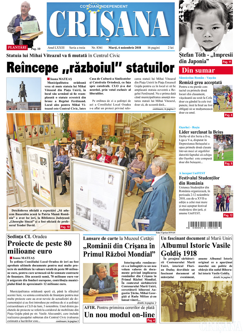Fondat la Oradea, în anul 1945, cotidianul Crişana este una dintre cele mai longevive publicaţii locale, cu o apariţie neîntreruptă de 81 de ani.