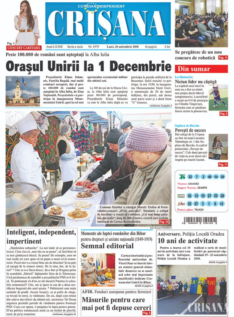Fondat la Oradea, în anul 1945, cotidianul Crişana este una dintre cele mai longevive publicaţii locale, cu o apariţie neîntreruptă de 81 de ani.