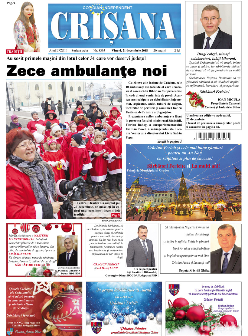Fondat la Oradea, în anul 1945, cotidianul Crişana este una dintre cele mai longevive publicaţii locale, cu o apariţie neîntreruptă de 81 de ani.