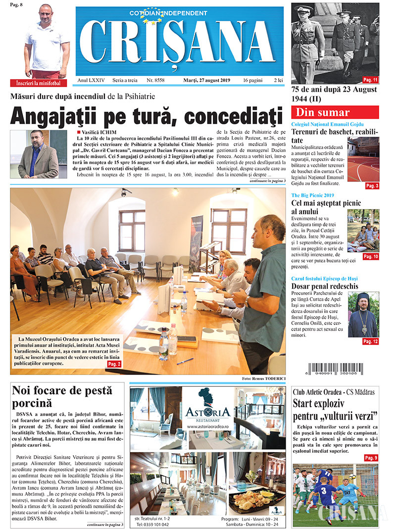 Fondat la Oradea, în anul 1945, cotidianul Crişana este una dintre cele mai longevive publicaţii locale, cu o apariţie neîntreruptă de 81 de ani.