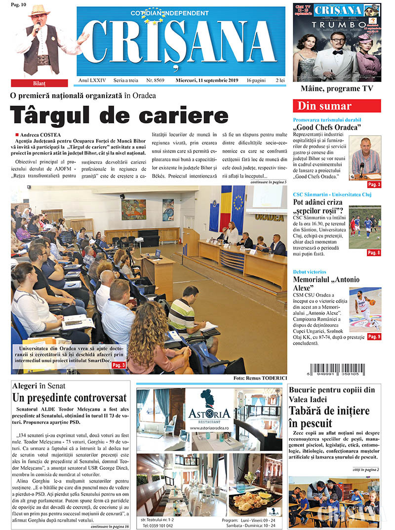 Fondat la Oradea, în anul 1945, cotidianul Crişana este una dintre cele mai longevive publicaţii locale, cu o apariţie neîntreruptă de 81 de ani.