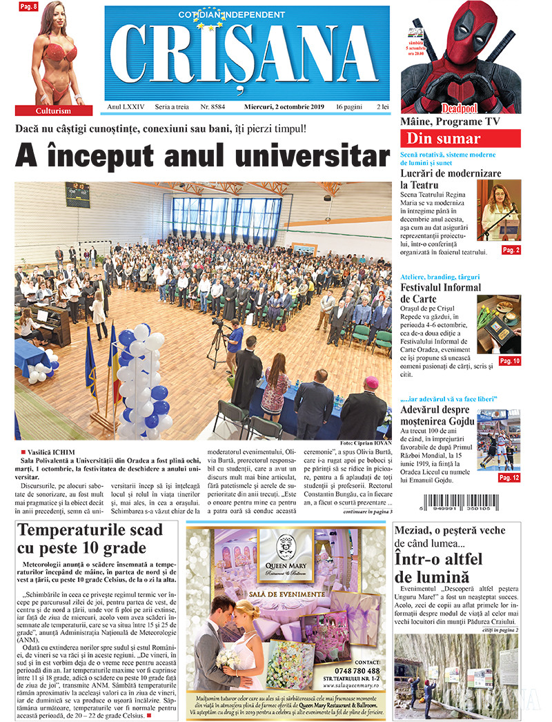 Fondat la Oradea, în anul 1945, cotidianul Crişana este una dintre cele mai longevive publicaţii locale, cu o apariţie neîntreruptă de 81 de ani.