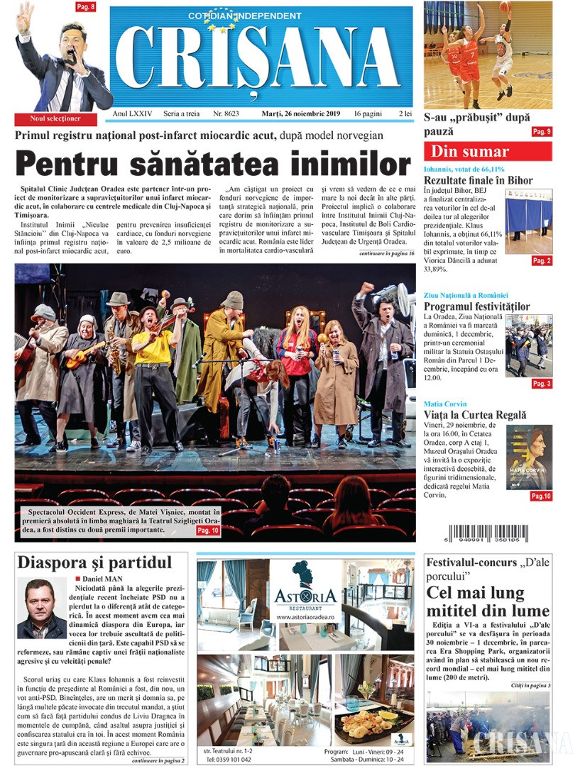 Fondat la Oradea, în anul 1945, cotidianul Crişana este una dintre cele mai longevive publicaţii locale, cu o apariţie neîntreruptă de 81 de ani.