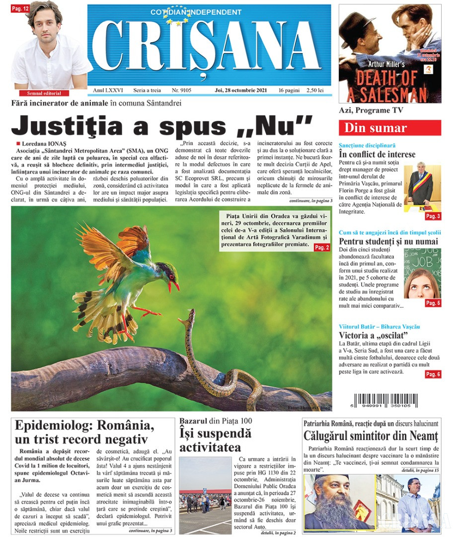 Fondat la Oradea, în anul 1945, cotidianul Crişana este una dintre cele mai longevive publicaţii locale, cu o apariţie neîntreruptă de 80 de ani.