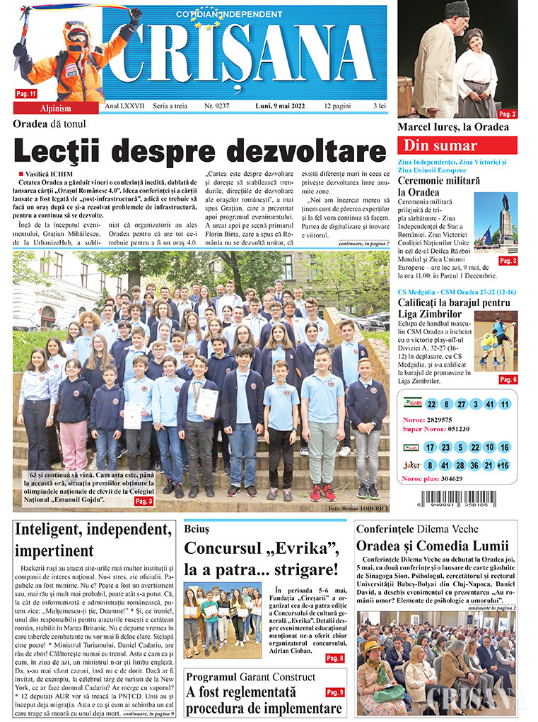 Beiuș - O cutumă de un deceniu: sfințirea apelor Văii Nimăiești Sfinţirea cea mare a apei - Boboteaza la români De vorbă cu Silviu Odobasianu, președintele CS Bihorul: Beiușul sportiv, la bilanț! Moment deosebit la sediul DAS Oradea - Bucurie prin cântec Școala Gimnazială nr. 16 - Elevii vor reveni în săli moderne „Spărgătorul de Nuci”, pentru cei mai vulnerabili - Lecție de iubire, predată de micile balerine
