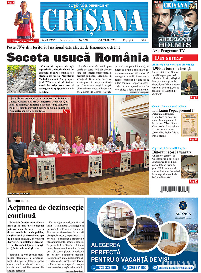 Fondat la Oradea, în anul 1945, cotidianul Crişana este una dintre cele mai longevive publicaţii locale, cu o apariţie neîntreruptă de 80 de ani.