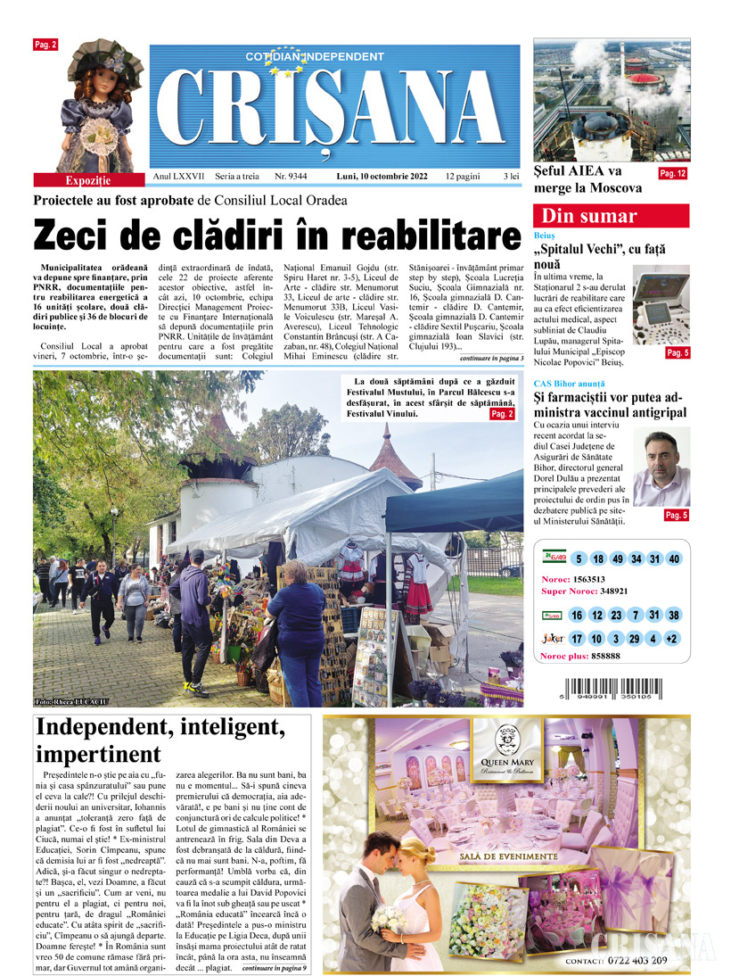 Fondat la Oradea, în anul 1945, cotidianul Crişana este una dintre cele mai longevive publicaţii locale, cu o apariţie neîntreruptă de 80 de ani.