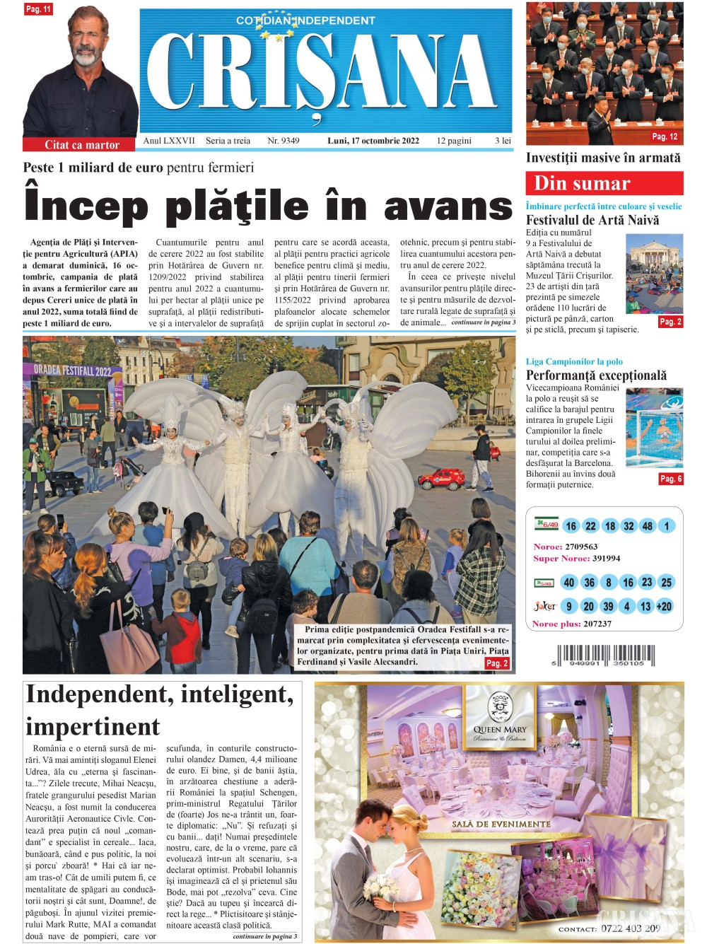 Fondat la Oradea, în anul 1945, cotidianul Crişana este una dintre cele mai longevive publicaţii locale, cu o apariţie neîntreruptă de 80 de ani.
