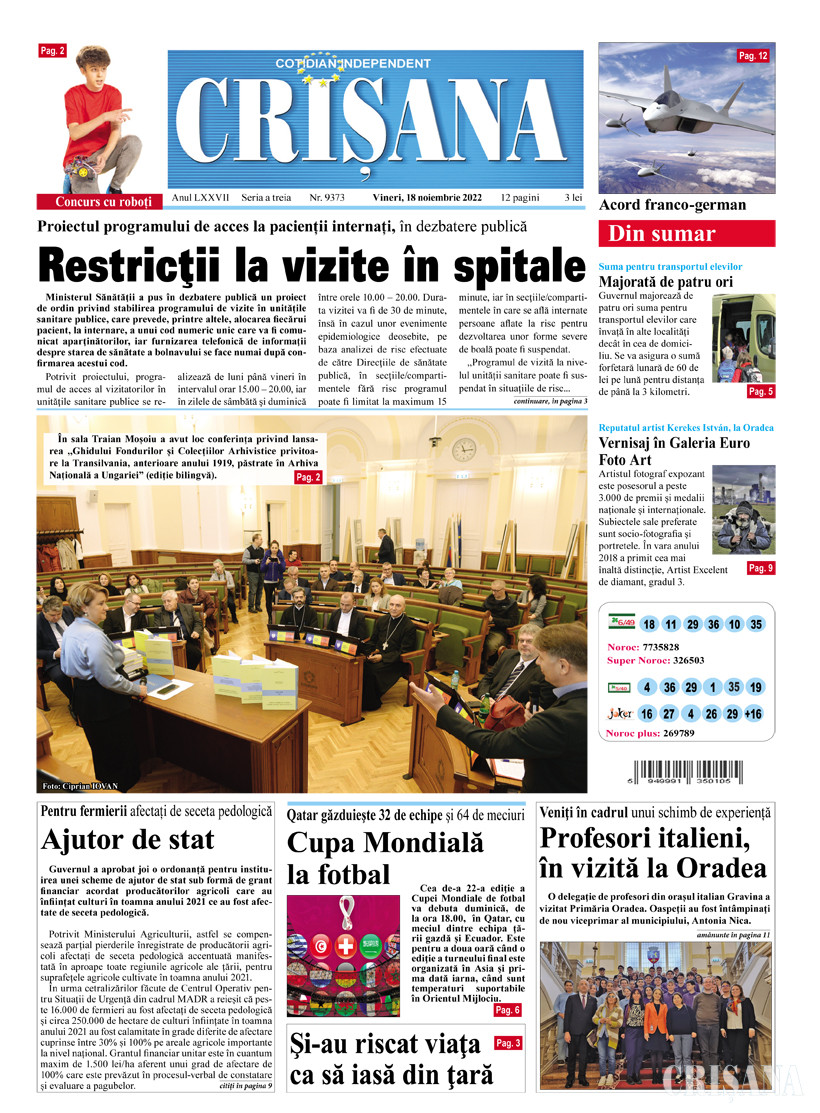 Fondat la Oradea, în anul 1945, cotidianul Crişana este una dintre cele mai longevive publicaţii locale, cu o apariţie neîntreruptă de 80 de ani.