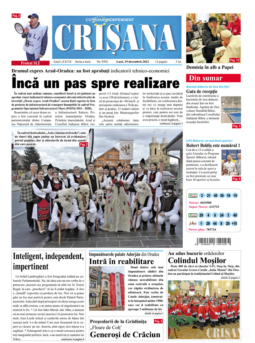 Fondat la Oradea, în anul 1945, cotidianul Crişana este una dintre cele mai longevive publicaţii locale, cu o apariţie neîntreruptă de 80 de ani.