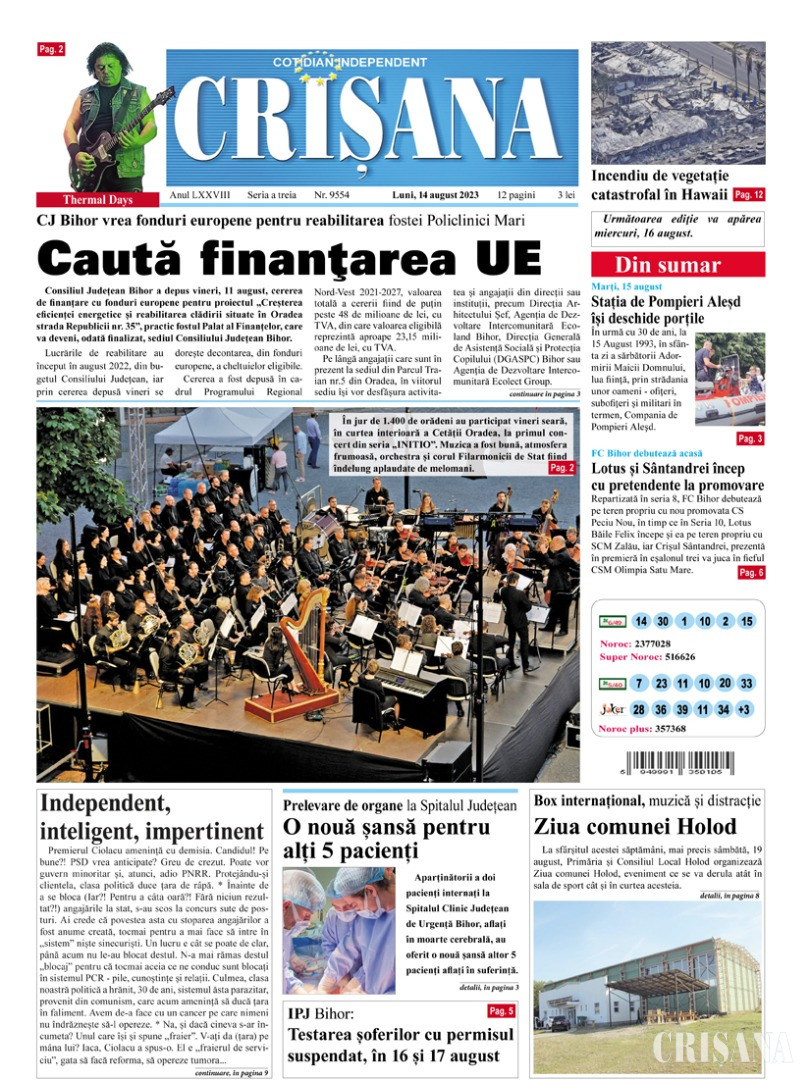 Fondat la Oradea, în anul 1945, cotidianul Crişana este una dintre cele mai longevive publicaţii locale, cu o apariţie neîntreruptă de 80 de ani.