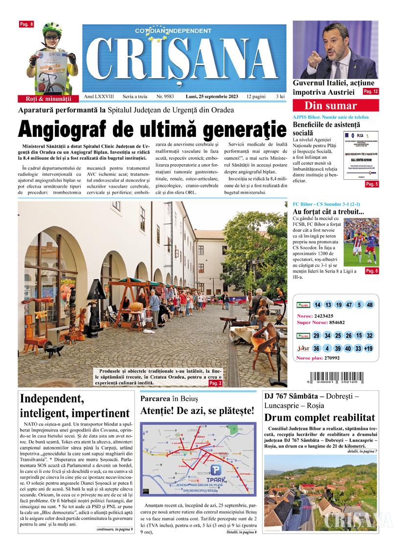 Fondat la Oradea, în anul 1945, cotidianul Crişana este una dintre cele mai longevive publicaţii locale, cu o apariţie neîntreruptă de 81 de ani.